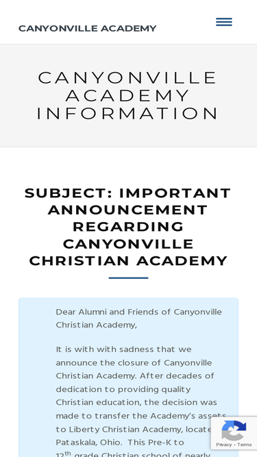79%Canyonville Academy information page and links to document requests such as transcripts and diploma copies. Canyonville Academy alumni website link also.