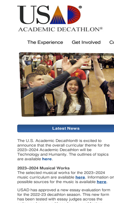 83%the usad is a ten-event scholastic competition for teams of high school students. events include economics, math, science, social science, literature, art, music, essay, speech and interview. questions are based on an annual theme.