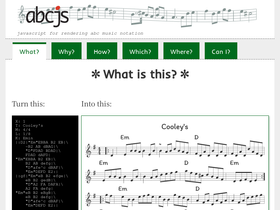 87%this is the home page at abcnotation.com. abc is a text based format for music notation, particularly popular for folk and traditional music.