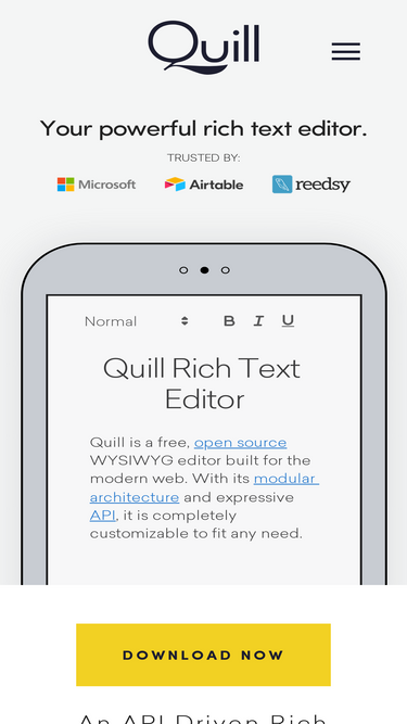 quill is a free, open source wysiwyg editor built for the modern web. completely customize it for any need with its modular architecture and expressive api.