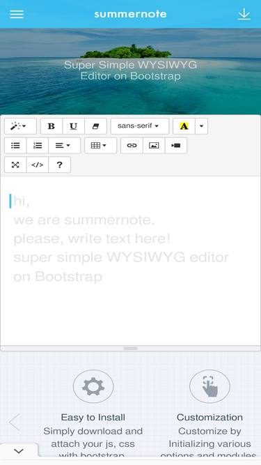 80%Super Simple WYSIWYG Editor on Bootstrap Summernote is a JavaScript library that helps you create WYSIWYG editors online.