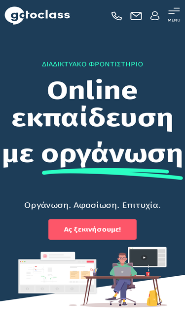 96%Online μαθήματα Δημοτικού, Γυμνασίου & Λυκείου από το Gotoclass, σε ολιγομελή τμήματα ή ιδιαίτερα μαθήματα. Ευέλικτα ωράρια & υπηρεσία επαγγελματικού προσανατολισμού.