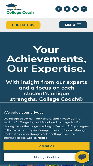 80%Join us each week on VoiceAmerica where Bright Horizons College Coach hosts their podcast, Getting In: A College Coach Conversation with Shannon Vasconcelos, Ian Brook Fisher, Sally Ganga & Kyra Tyler.