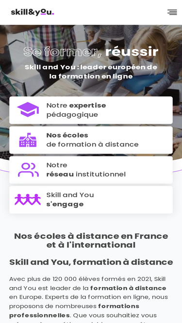 92%Acteur majeur de l'e-learning, Skill & You vous accompagne dans votre projet professionnel avec plus de 200 formations métiers et diplômantes.