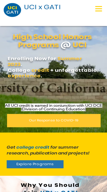 University of California, Irvine (UCI) x Gifted and Talented Institute ("GATI") offers college credit for research and innovation programs to high school students.