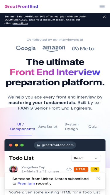67%The one-stop to prepare well for your TikTok front end interviews. Discover insider tips, optimal prep strategies, and practice questions known to be tested.