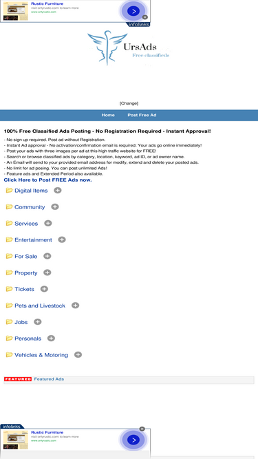 95%free classified website without registration and instant approval for usa, uk, india. no registration is required and no activation/confirmation email is required. high traffic web site that allows visitors to place a classified ads for usa, uk, india, etc