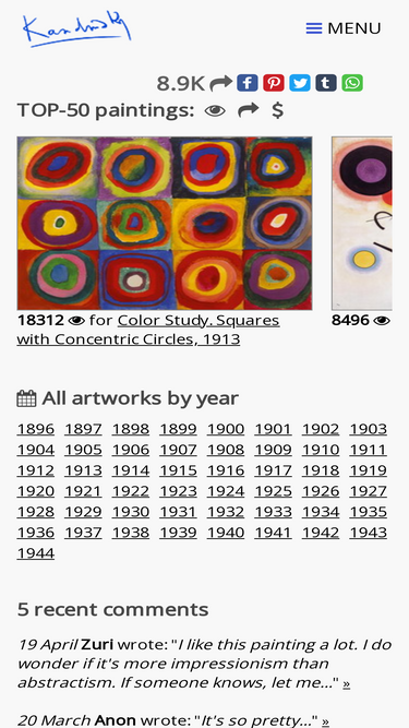 The other five competitors in the top 10 list are gustav-klimt.com, wassilykandinsky.net, renemagritte.org, smarthistory.org, and thielskagalleriet.se.