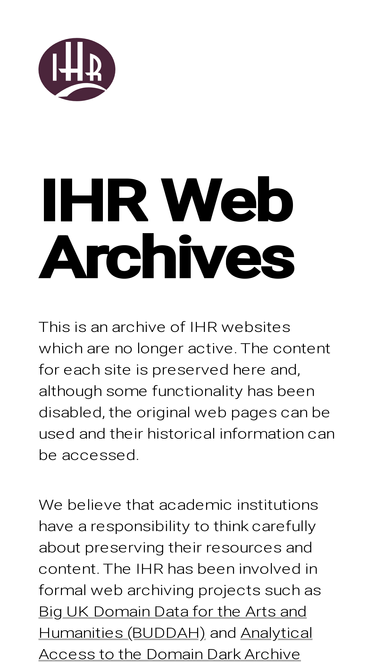 100%web archives of institute of historical research's projects