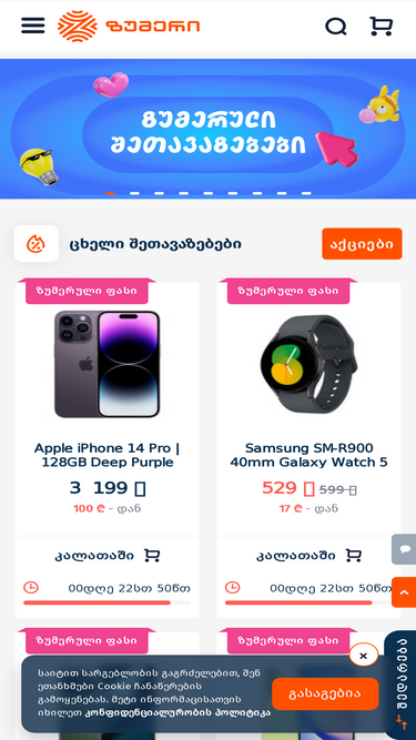 97%მობილური ტელეფონები, აქსესუარები, პლანშეტები, ლეპტოპები, კონსოლები, თამაშები, ყველაფერი ზუმერულ ფასად!
