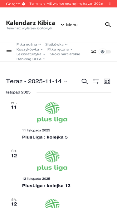 Kalendarz Kibica - terminarz wydarzeń sportowych, program mistrzostw świata i Europy, kolejki ligowe, transmisje - wszystko, co potrzebuje kibic.