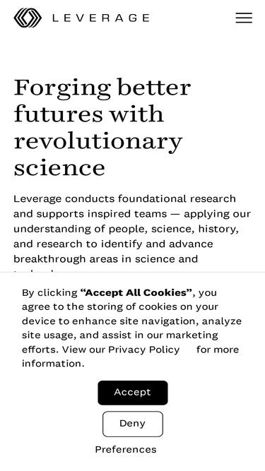 83%Leverage conducts foundational research and supports inspired teams — applying our understanding of people, science, history, and research to identify and advance breakthrough areas in science and technology.