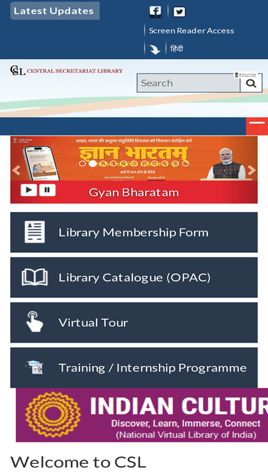 86%central secretariat library (csl) under the ministry of culture is one of the largest tangible treasures of knowledge next to national library, kolkata for indian and foreign document resources. csl’s resources are an amalgamation of many old institutions including the resources of imperial secretariat library, calcutta that came into existence in 1891 during the period of lord curzon and validated by the imperial library act of 1901.