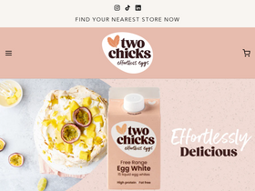 73%Available from This version of our liquid egg white can be stored out of the fridge before opening. Genius! High protein Fat and cholesterol free Pasteurised Vegetarian Pack size: 500ml Tag us in your recipes @twochicksproducts. Recipe Conversion 2 tbsp = 1 egg white = 30g 3 tbsp = 1 medium whole e