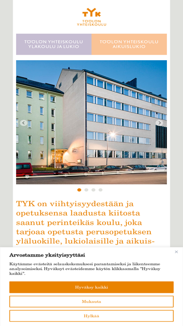 92%Töölön yhteiskoulun lukion positiivinen ja innostava ilmapiiri houkuttelee opiskelemaan. Uskallan yrittää, opiskella, kasvaa ja kehittyä.