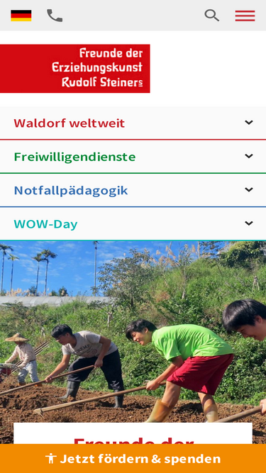 37%Ein Tag im Jahr mit vollem Engagement: Ihr setzt Euch ein für Kinder und Jugendliche an Waldorfeinrichtungen weltweit. Gemeinsam als Klasse oder Schule findet Ihr eine tolle Idee wie man Spendenaktionen durchführen und andere Menschen begeistern kann. Waldorf One World - Ihr tut etwas Gutes für die Welt!