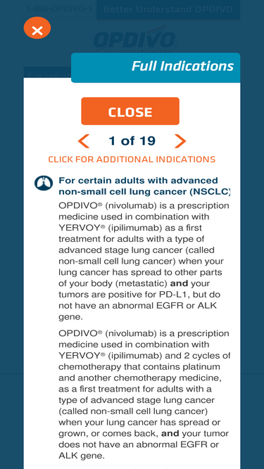 95%OPDIVO® (nivolumab) is a prescription medication that treats certain types of cancer. Read the indications, side effects, and more. Please see Indication and Important Safety Information.