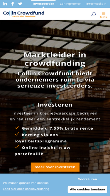 92%Introductie investeren in crowdfunding. Collin Crowdfund biedt investeerders een aantrekkelijk rendement op goed beoordeelde leningaanvragen.