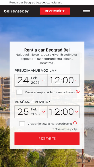 83%Rent a car Beograd (Srbija). Aerodrom Nikola Tesla. Najjeftiniji. Najniže cene od 12€, 15€, 18€, 20€. Kasko osiguranje. Neograničena kilometraža. Bez depozita.