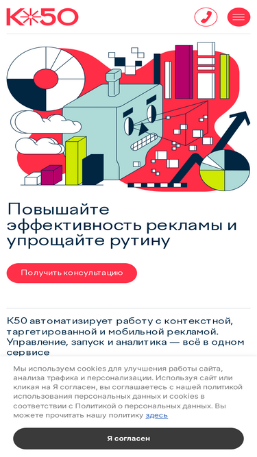 79%К50 – комплекс инструментов для улучшения KPI и оптимизации контекстной, таргетированной и мобильной рекламы. Для рекламодателей, маркетологов и рекламных агентств.
