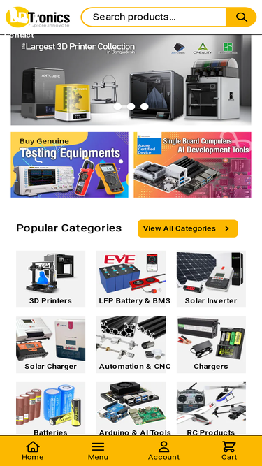 97%buy arduino, raspberry pi, sensor, module, lifepo4 lithium iron phosphate batteries, charger & bms, solar charge controller, solar inverter, multi-meter, oscilloscope, ic, mosfet, transistor, robotics parts, motor, servo, cnc, 3d printers and accessories, etc. in bangladesh. get at lowest price and best price. electronics store and online delivery in dhaka, chittagong.