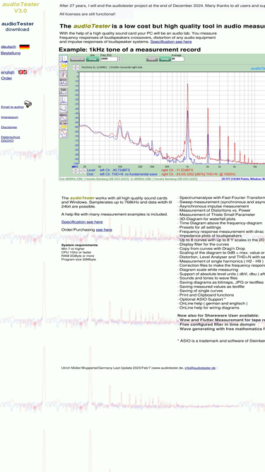 97%audio-measuring-system, spectrum analyzer, oscilloscope, wavegenerator, shareware, software with soundcard