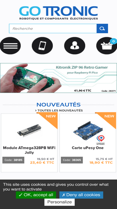 87%Votre partenaire électronique depuis plus de 50 ans pour vos développements sur Arduino, Raspberry Pi, micro:bit, PIC, robotique, capteur, outillage, alimentation, alarme, vidéo...