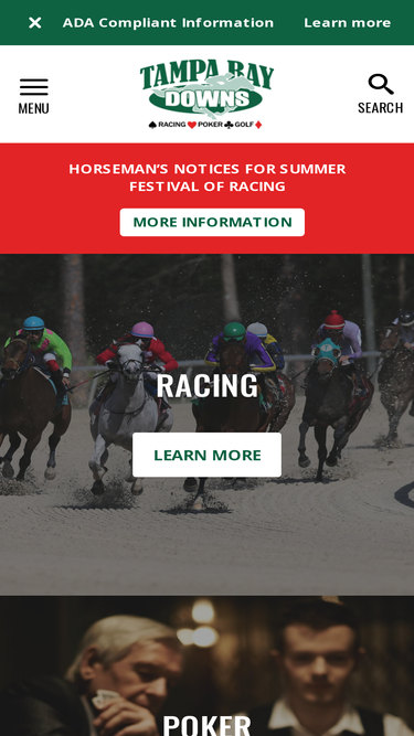 78%Experience the thrill of Live Thoroughbred Horse Racing at Tampa Bay Downs! Poker, Simulcasting & Golf year-round!