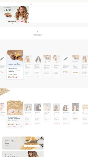 Changez de coupe en un clin d’œil avec nos extensions cheveux naturels remy hair : extensions à clip, extensions adhésives, extensions loops, extensions anneaux, extensions de cheveux à la Kératine, queue de cheval, ponytail, tissage et perruques synthétiques.