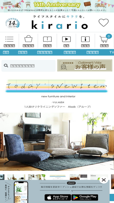 85%暮らしにキラリを届けるために自分たちで選んだ家具を自分たちでコーディネートをし、実際にスタッフが使用してみて、インテリアの魅力をお客さまの目線で発信することにこだわっています。北欧、ナチュラル、ヴィンテージなど、幅広いテイストの家具・インテリア雑貨を揃えたセレクトショップ。合計15,000円以上の購入で送料無料。ポイントも貯まります。