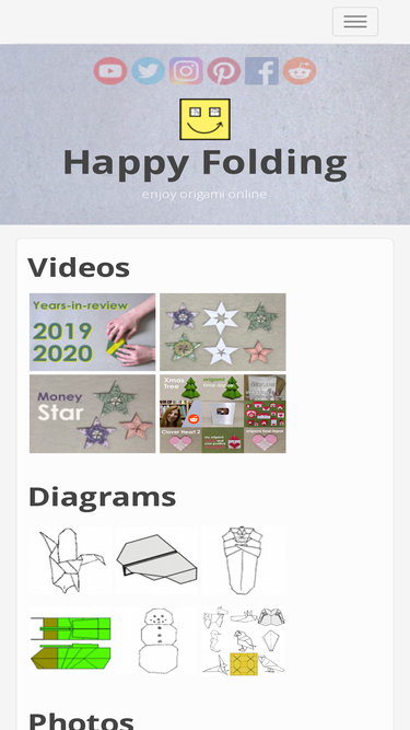 81%on happyfolding.com you can view instructional origami videos, pictures of folded origami models, and check translations of origami terms in different languages. it's a place to enjoy origami online. videos and imagery were created by sara adams, and the