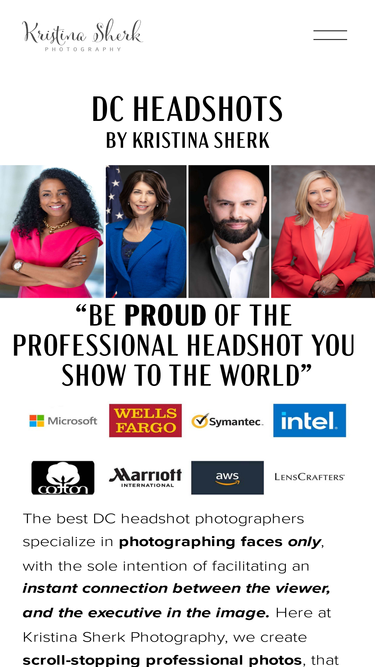 94%Best professional Headshots by Kristina Sherk. Centrally located Bethesda Photo Studio. Corporate, professional & actor headshots. 20 years experience. --- 100% Money Back Guarantee