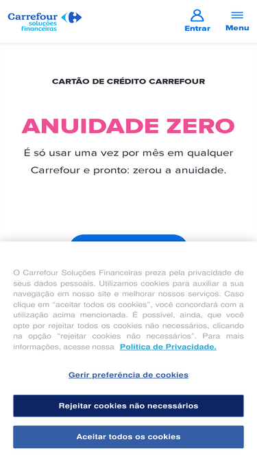 85%conheça os benefícios do cartão carrefour. com ele, você tem mais possibilidades de parcelamento, descontos exclusivos e ainda pode zerar a anuidade. confira!
