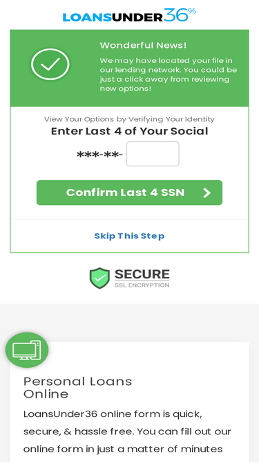 85%with loansunder36, you can receive funding up to $35,000. we have extensive partnerships with large authorized lenders. this allows us to cover almost all 50 states. if approved, the loan may be received in as soon as the next business day from the privacy of your own home.