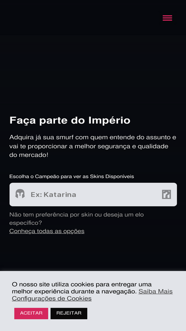 91%O portal definitivo para sua conta smurf/unranked. Com entrega imediata e atendimento dedicado ao cliente com: Smurf Aleatória, Smurf com Escolha de Skin, Smurf com Prime, Conta PBE, Valorant, Contas com elo e serviços especializados.