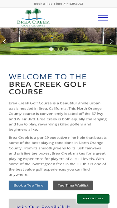 99%Brea Creek Golf Course offers golfers of all abilities an experience that is both challenging and enjoyable. Brea offers a quick enjoyable round, pro shop with all necessities, a driving range, and lessons. Book your tee time today to see what everyone is talking about!