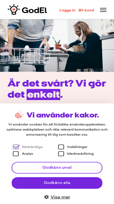 74%Bli GodEl-kund: 39 kr/mån + el till inköpspris. Kvartspris eller rörligt, ingen bindningstid. All vinst till välgörenhet.