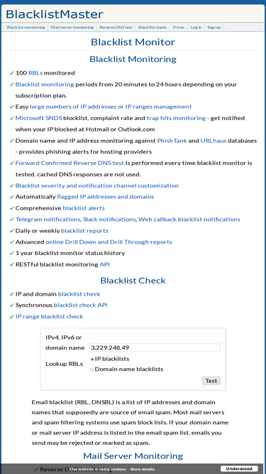 74%blacklist monitoring. ip and domain blacklist check. ip address reputation monitoring. blacklist check api.