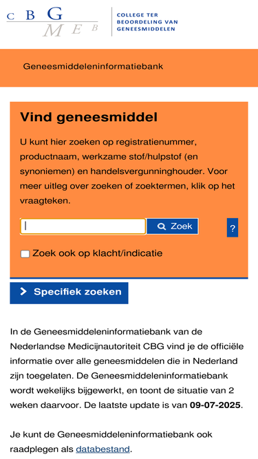 78%Op de Geneesmiddeleninformatiebank zijn de officiële registratiedocumenten van een geneesmiddel te raadplegen, zoals de wetenschappelijke productinformatie, het openbare beoordelingsrapport en de patiëntenbijsluiter.