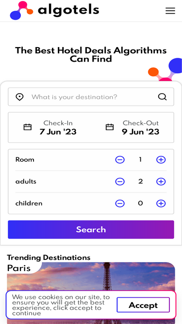 72%The best hotel deals algorithms can find. We do the heavy lifting by searching through millions of possibilities to get you the best hotel deal possible.