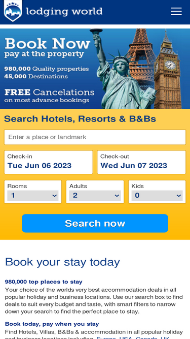 65%980,000 quality hotels, bed and breakfasts and rental accommodation. book today, pay on departure.