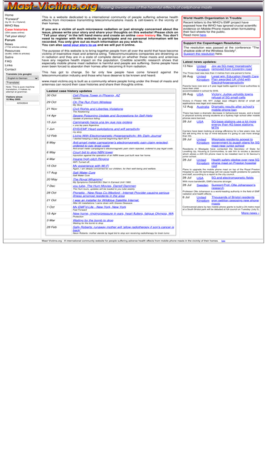 78%mobile phone masts, cell phone towers, wifi, cell phones, mobile phones and wireless are making people sick worldwide. this website tells their stories and reports the latest news on the subject.