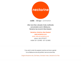 77%nectarine: code, animation and design in new zealand. gorgeous sites, cutting edge code and bloody funny animation. wordpress, flash, mysql, html5, animation, actionscript, ipad apps and more.