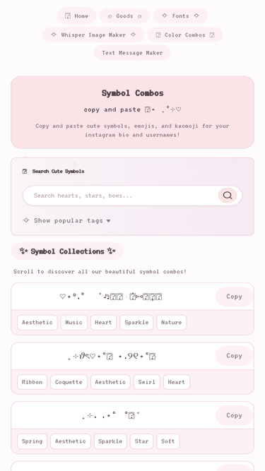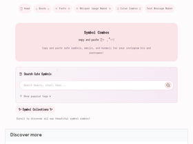 96%FSYMBOLS is a collection of cute and cool symbols and special text characters for your Facebook, Instagram bio, chat, posts, or some profiles. Put these special symbols in your chat, status, name, comments, ascii art, messages, or Twitter. Enjoy my huge text character collection of special emoji for social networks.