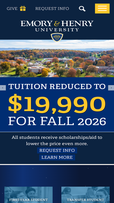63%Ranked among the nation’s best private liberal arts institutions, Emory & Henry University in Virginia has a selection of academic majors, minors and t...