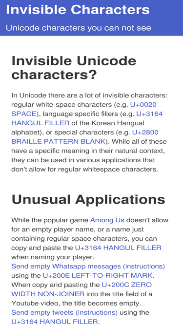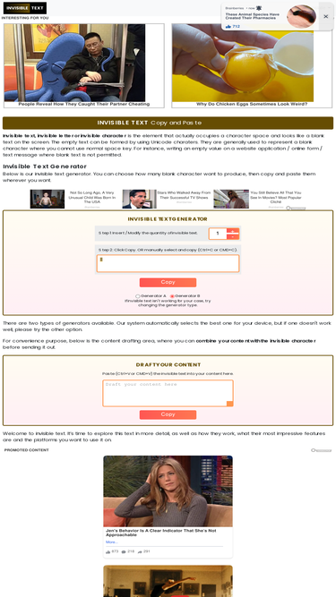 74%Generate invisible text or blank characters with one click. Perfect for hiding names or creating empty spaces easy to copy & paste.
