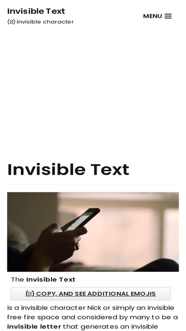 100%Teks Kosong dibuat menggunakan Karakter Tidak Terlihat yang muncul sebagai spasi kosong. Salin dan tempel spasi kosong untuk mengirim pesan kosong atau tujuan lainnya.