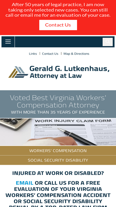 81%Attorney Gerald G. Lutkenhaus has over 35 years of experience representing injured and disabled workers with Virginia Workers' Compensation claims and Social Security Disability denials.