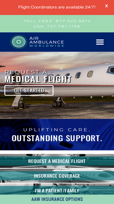 100%u.s. air ambulance medical transportation services, medical flight service. patient care