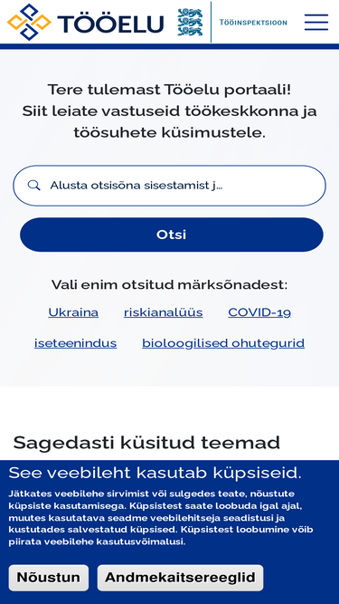 85%Перед вами веб-страница (https://www.tootukassa.ee/), созданная и составленная таким образом, чтобы соответствовать требованиям по обеспечению доступности контента WCAG 2.1 AA. Это означает, что при разработке были использованы определенные технические средства и принципы составления контента, которые позволяют пользоваться страницей людям с нарушениями зрения, слуха, речи, физическими, сенсорными или неврологическими дефектами, а также нарушениями способности к обучению.